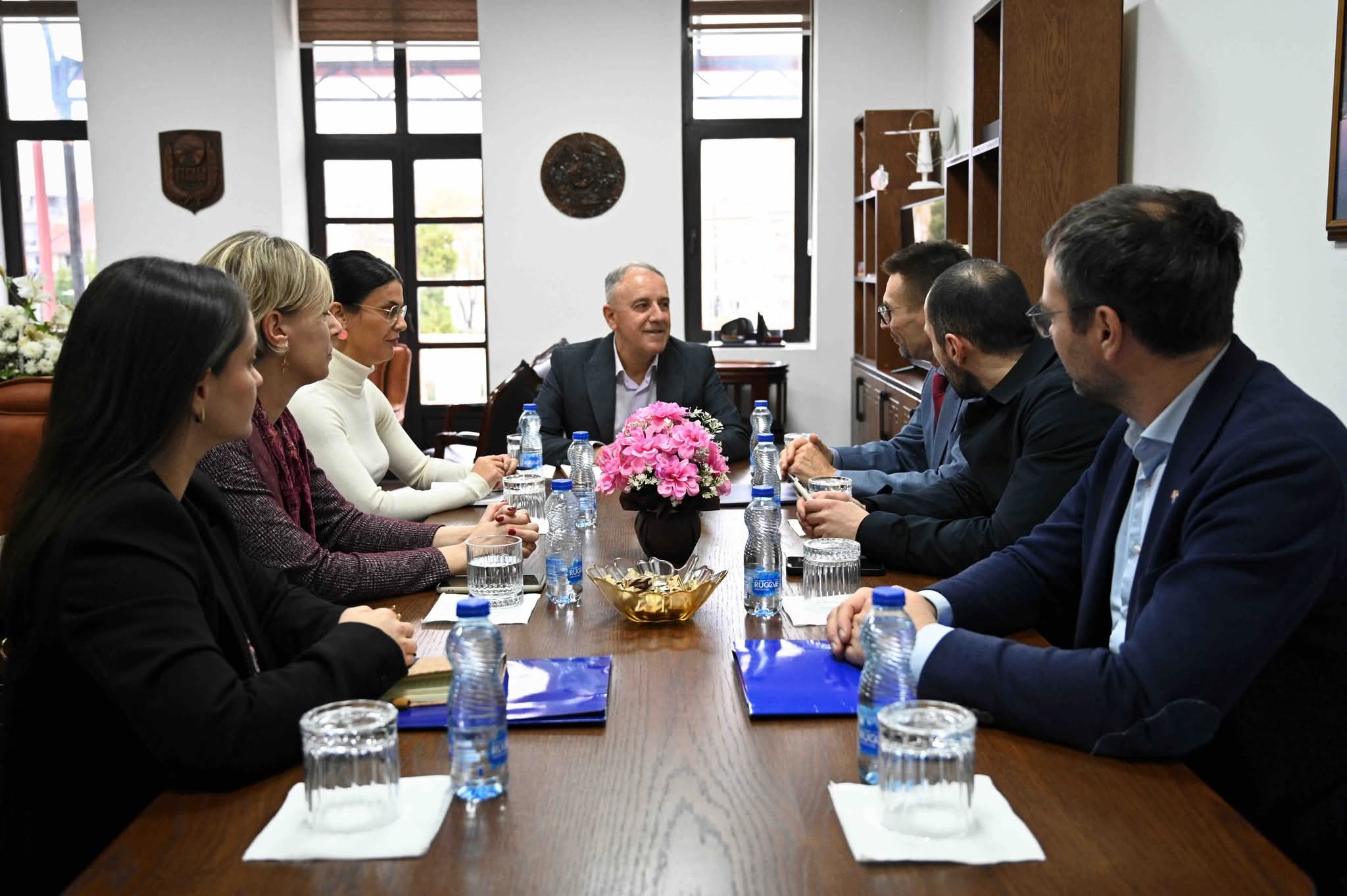 Si mund të përfitojnë komunat nga Bashkimi Evropian dhe si e shohin qytetarët e Strugës procesin e integrimit evropian, këto ishin dy temat kryesore të takimit miqësor dhe shumë konstruktiv që Kryetari i Komunës së Strugës, Mendi Qyra, zhvilloi me zv. ambasadorin e BE-së, Ben Nupnau, dhe zëvendësshefin e sektorit politik dhe të informacionit të Delegacionit të BE-së, Martin Schroder.