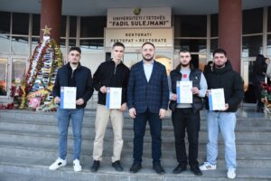 Studentët e Universitetit të Tetovës, përkatësisht të Katedrës së Informatikës-Fakultetit të Shkencave Matematike – Natyrore (FSHMN), Gent Kurtishi, Endrit Zejneli, Arton Useini dhe Eldar Mustafa, kanë fituar vendin e parë në garën nacionale MKSafeNet Innovators 2025 të mbajtur në Institutin Max Vander Shtul në UEJL, nën mentorimin e Prof. Dr. Festim Halili, profesor në po të njëjtën katedër.
