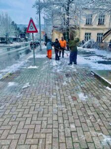 Додека градот сè уште спие под белиот снежен покривач, нашите теренски работници веќе се на нозе, неуморно работејќи на расчистување на уличките и булеварите, за секој граѓанин да го започне денот безбедно и без пречки.