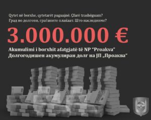 Nga ana tjetër, borxhi i akumuluar shumëvjeçar i NP UKS ndaj EVN-së kap vlerën mbi 3.000.000 EURO, ndërsa këstet mujore për shlyerjen e tij janë rreth 3 milionë denarë.