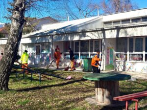 Во рамки на оваа акција беше извршено целосно чистење на училишните дворови и околниот простор, како и отстранување на отпадот, со цел подобрување на условите за учениците и децата од предучилишна возраст.